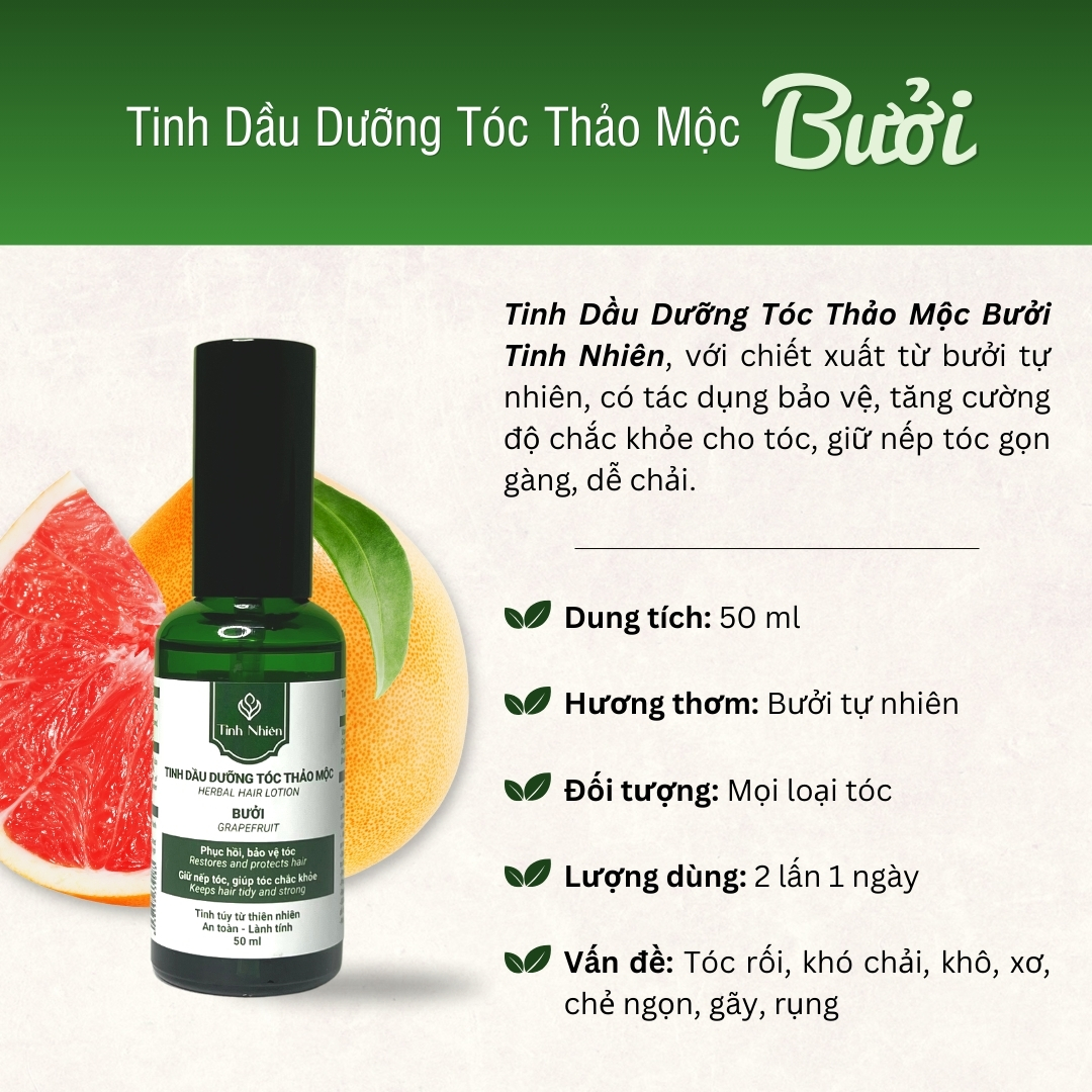Hiểu được điều đó, Tinh Nhiên đã cho ra đời sản phẩm Tinh Dầu Dưỡng Tóc Thảo Mộc Bưởi Tinh Nhiên.